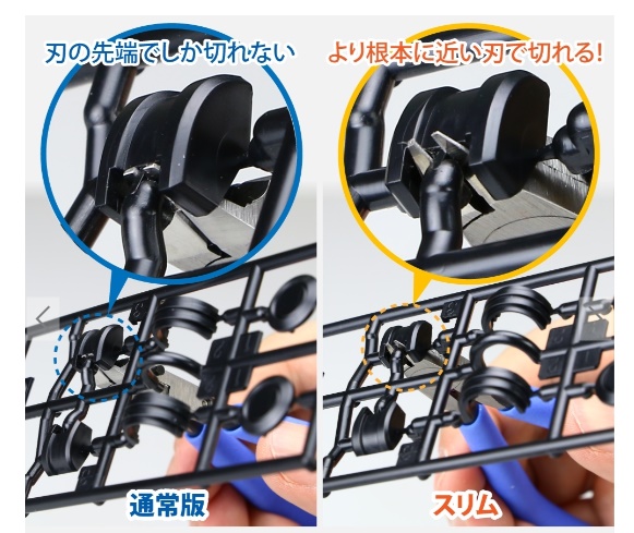 もちろん、先端の細長い部分がないので狭い部分に切断刃が届かなかったり、先端部分がないことで力のコントロールが難しい…など使用感は落ちますが、それでもアルティメットニッパー特有の「ゲートを真っすぐにキレイに切れる」という機能性は失われるわけではありません。